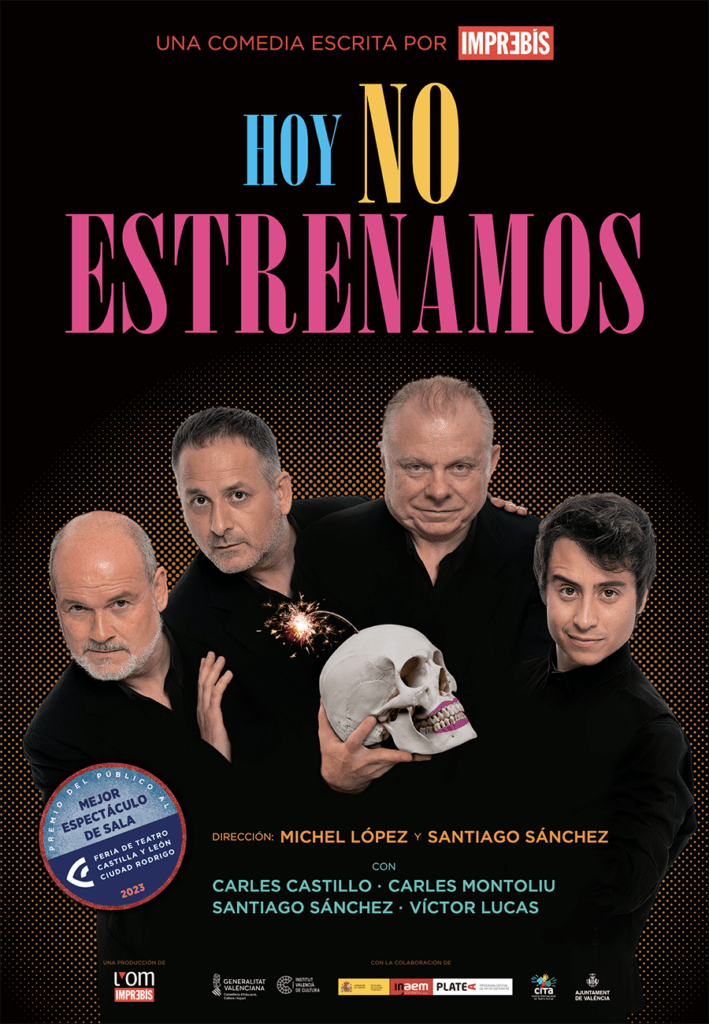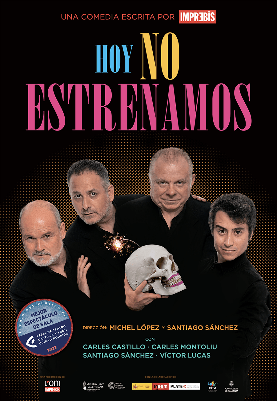 - Del 19 de febrero al 15 de marzo, la veterana compañía valenciana L’Om Imprebís despide de los escenarios valencianos su exitosa comedia Hoy no estrenamos, una declaración de amor al teatro a través de la historia de una clase de interpretación para amantes del teatro que intentan por todos los medios poner en pie la función final de curso.