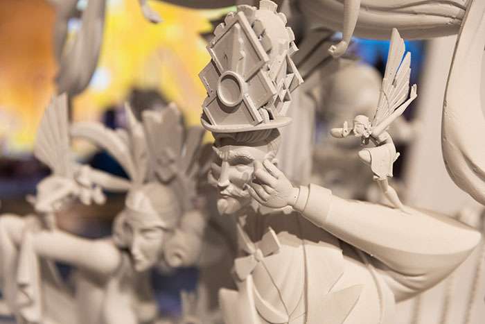 La muestra continúa con una amplia selección de proyectos de diseño y escultura digital de fallas y hogueras, entre los que se encuentran los bocetos de la hoguera ganadora de 2025, ‘Vanity’, realizada por Paco Torres con el diseño de Camallonga.