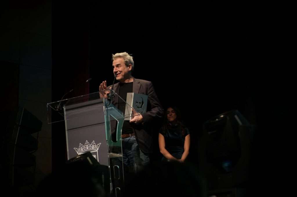 El momento más esperado de la gala llegó con la entrega del Premio Antonio Ferrandis al actor Alberto San Juan, en reconocimiento a sus treinta años de trayectoria en el mundo del cine, el teatro y la televisión. El intérprete madrileño, ganador de dos Goya, destacó emocionado que se trataba del primer galardón al que recibía por el conjunto de su trayectoria: “Me considero un actor del montón con muchísima fortuna, probablemente inmerecida, no como algo negativo, sino que simplemente me veo como uno más del pelotón”, se sinceraba el actor. “En mi vida he sido bastante cobardica y me alegra no haberlo sido en la ocasión en la que casi decido no ser actor. Me parecía que no valía para eso. Aquella vez escogí el deseo frente al miedo”, confesaba.