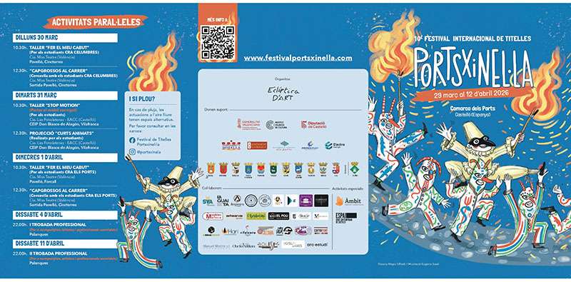 Una experiencia que podrá vivirse en la comarca de Els Ports (Castellón) entre el 29 de marzo y el 12 de abril del 2026, con cerca de 60 actividades entre representaciones, talleres y encuentros profesionales a desarrollar en Morella (y Ortells), Vilafranca, Forcall, Cinctorres, Todolella, Portell de Morella, Palanques, Villores, La Mata, Castell de Cabres, Vallibona, Herbers, Ares y la extensión de La Sénia (Tarragona).