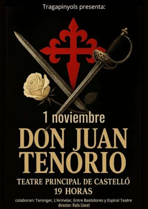 El clásico de José Zorrilla, Don Juan Tenorio, subirá a escena el sábado 1 de noviembre a las 19:00 horas, con la participación de las agrupaciones Taronger, L’Armelar, Entre Bastidores y Espiral Teatre.