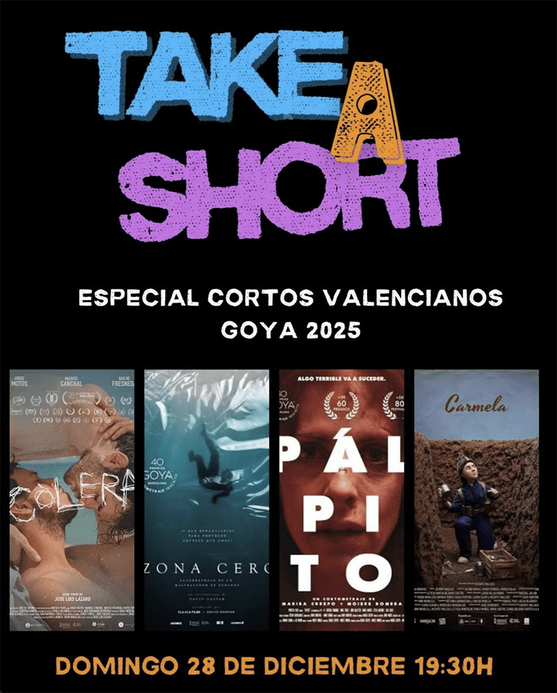 Valencia lanza una nueva iniciativa cultural para los amantes del cine: Take A Short, un ciclo de proyecciones de cortometrajes con coloquios posteriores con sus creadores. La actividad nace con vocación de continuidad y expansión por diferentes salas de cine de la Comunitat Valenciana, con el objetivo de dar visibilidad al talento local y generar nuevas vías de ingresos recurrentes para cortometrajes con destacado recorrido en festivales.