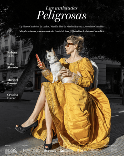 - Tercera y última semana en cartel para Las amistades peligrosas, versión escénica de la famosa novela epistolar francesa de Pierre Choderlos de Laclos que analiza la oscura alianza entre sexo y poder. Un espectáculo de alarcón&cornelles con una innovadora puesta en escena, capaz de generar un universo híbrido entre el siglo XVIII y el XXI.