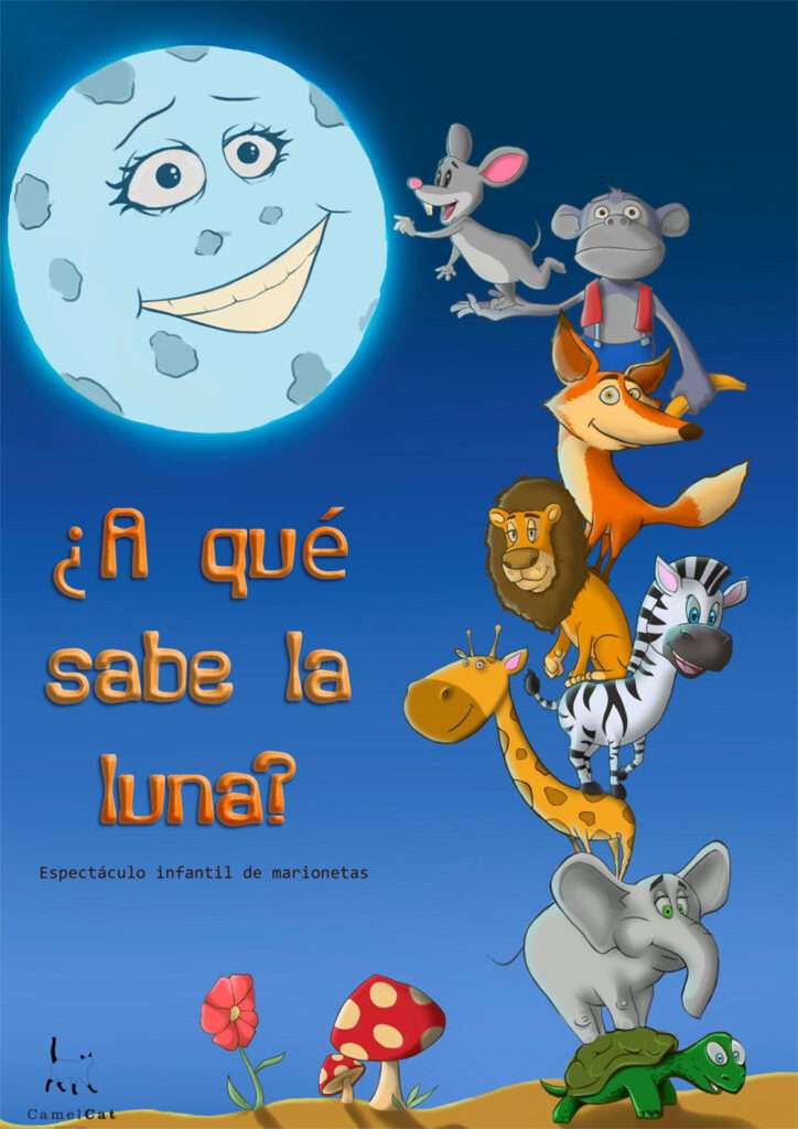 Versión escénica del popular cuento ¿A qué sabe la luna? con títeres de gran formato. Una pieza recomendada para espectadores a partir de 2 años en los que la narradora se apoya en diferentes personajes para contar la historia de un grupo de animales empeñados en descubrir a qué sabe el astro que ilumina las noches selváticas. Juntos intentarán llegar al cielo para probar un trocito. ¿Lograrán alcanzarla?