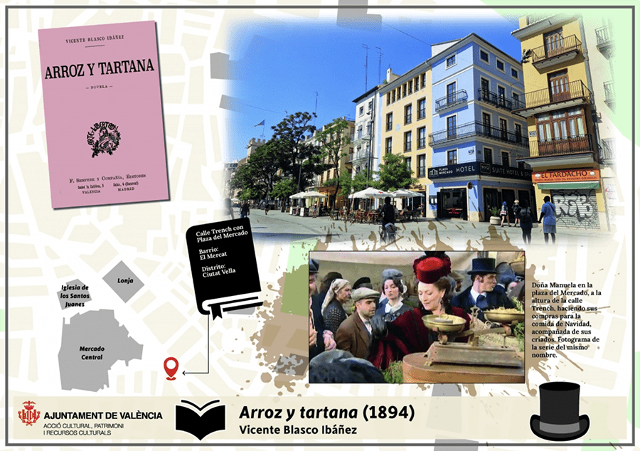 Los personajes elegidos para esta primera fase son Doña Manuela y el niño aragonés, ambos de la novela ‘Arroz y Tartana’ (1894), de Vicente Blasco Ibáñez, y Mortadelo y Filemón, de la película ‘La gran aventura de Mortadelo y Filemón’ (2003), de Javier Fesser. Mientras que las dos primeras esculturas se instalarán en la plaza del Mercat, la creación del dibujante Francisco Ibáñez se ubicará en las inmediaciones de la calle de Dalt, en el barrio del Carme y a escasos metros tanto del futuro Centro del Cómic de València, que impulsa igualmente la Delegación de Acción Cultural, Patrimonio y Recursos Culturales, como del edificio de viviendas ambientado en el film como ‘13 Rue del Percebe’.